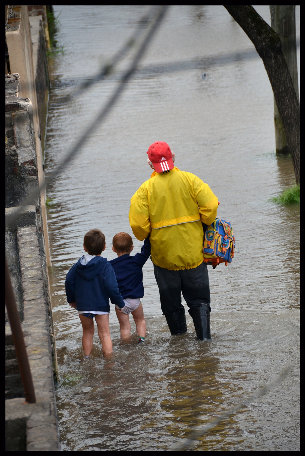 Fotos de hoy 18 septiembre en Tigre, subió la marea y llevamos todo el día entre aguas, parece un río la ciudad, podéis ver gente en kayac por las calles, gente mojándose si o si para transitar.